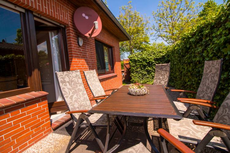 Vor dem Haus liegen zwei Parkplätze für Sie und hinter dem Haus finden Sie eine sichtgeschützte Terrasse auf der man wunderbar einen kleinen Mittagsschlaf machen kann.